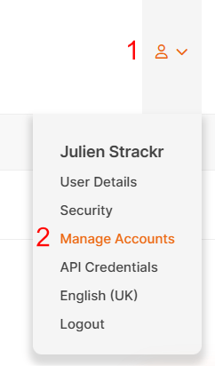 Click on the menu icon on the top right (1), then select Manage Accounts: