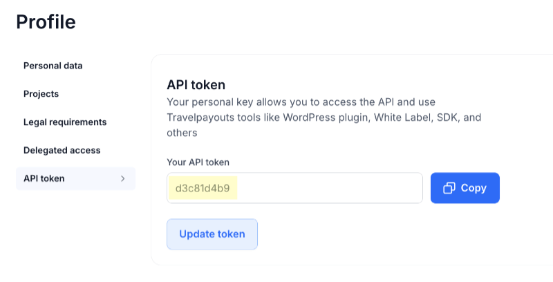 1. Log in to your account and go to your Profile page. In the left menu, click on API Token: